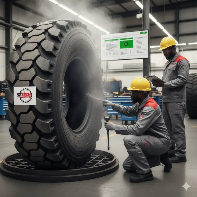 STTECH Burkina propose des solutions complètes pour la réparation et la maintenance des pneus OTR :